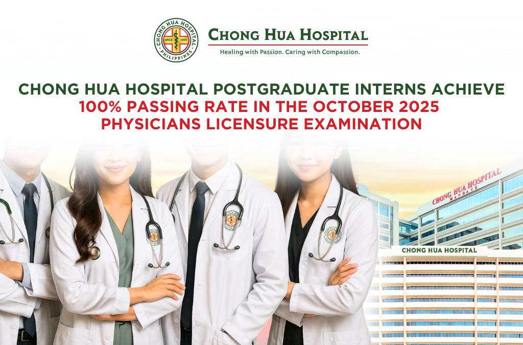 Chong Hua Hospital proudly celebrates the remarkable achievement of its Postgraduate Interns, who attained a 100% passing rate in the October 2025 Physicians Licensure Examination (PLE) — a testament to the hospital’s enduring commitment to excellence in medical education and healthcare.